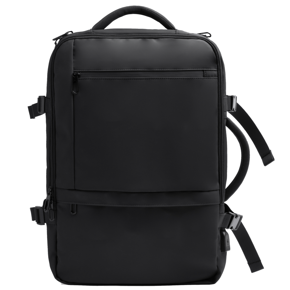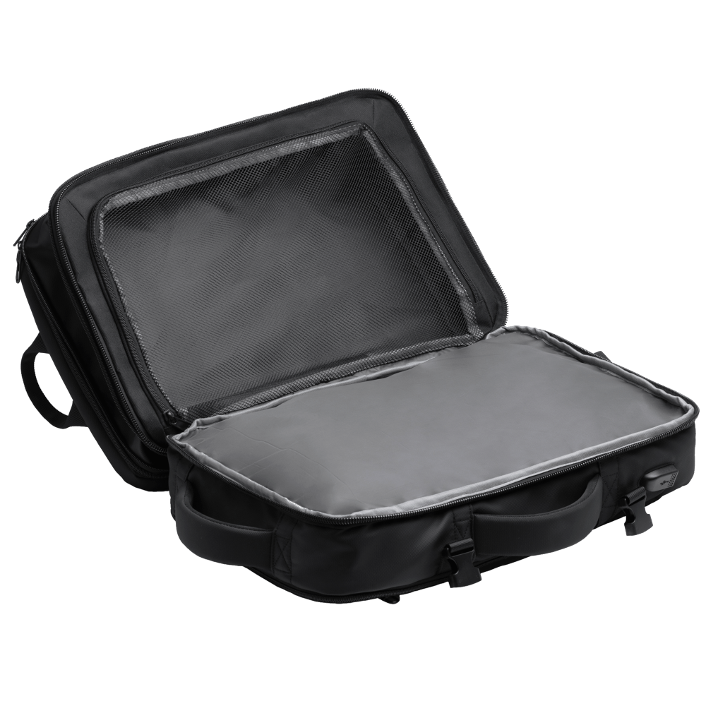 Contiene 3 compartimentos de equipaje, bolsillo exterior frontal, bolsillo antirrobo en la parte trasera y asa izquierda