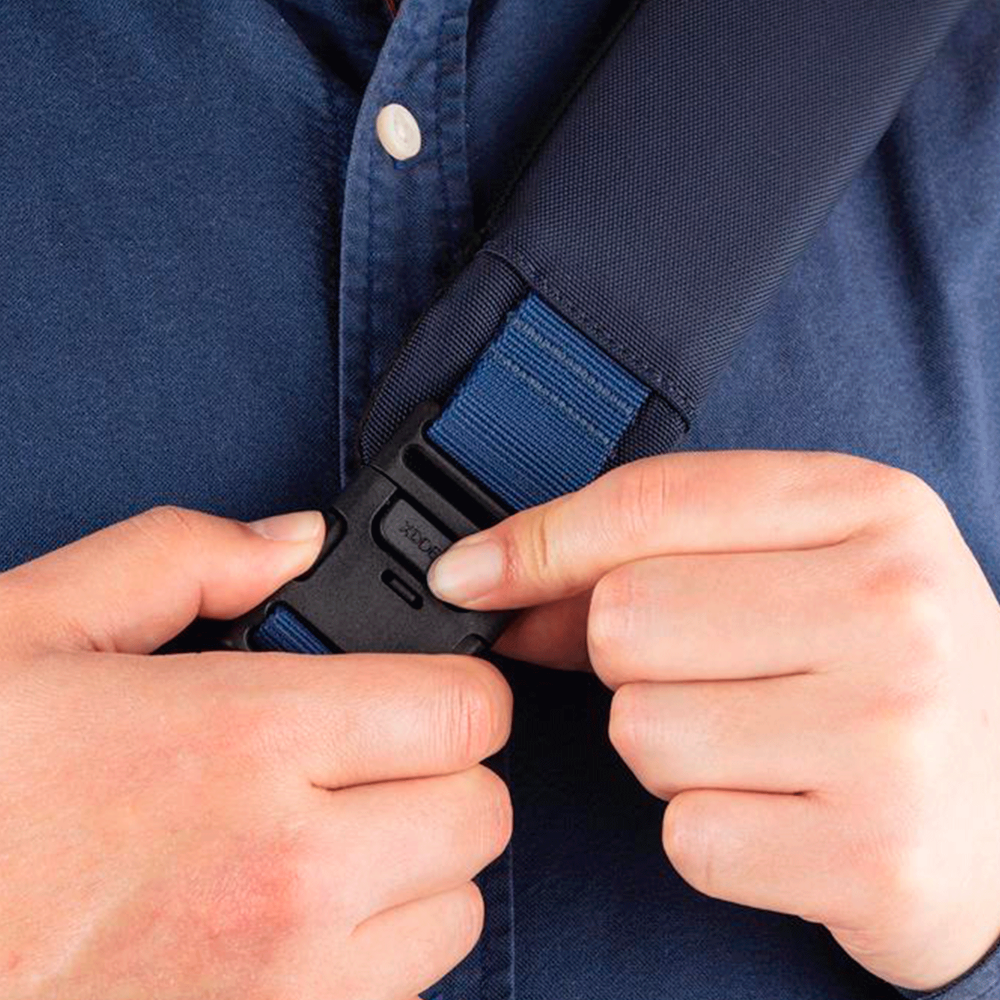 Segura, cómoda e inteligente. Siéntete protegido con las famosas características antirrobo, como cremalleras ocultas, sin acceso frontal, bolsillo con protección RFID y material resistente a cortes, además, una hebilla de seguridad de 3 puntos asegurará que tus elementos esenciales diarios estén siempre a lo largo de tu cuerpo.