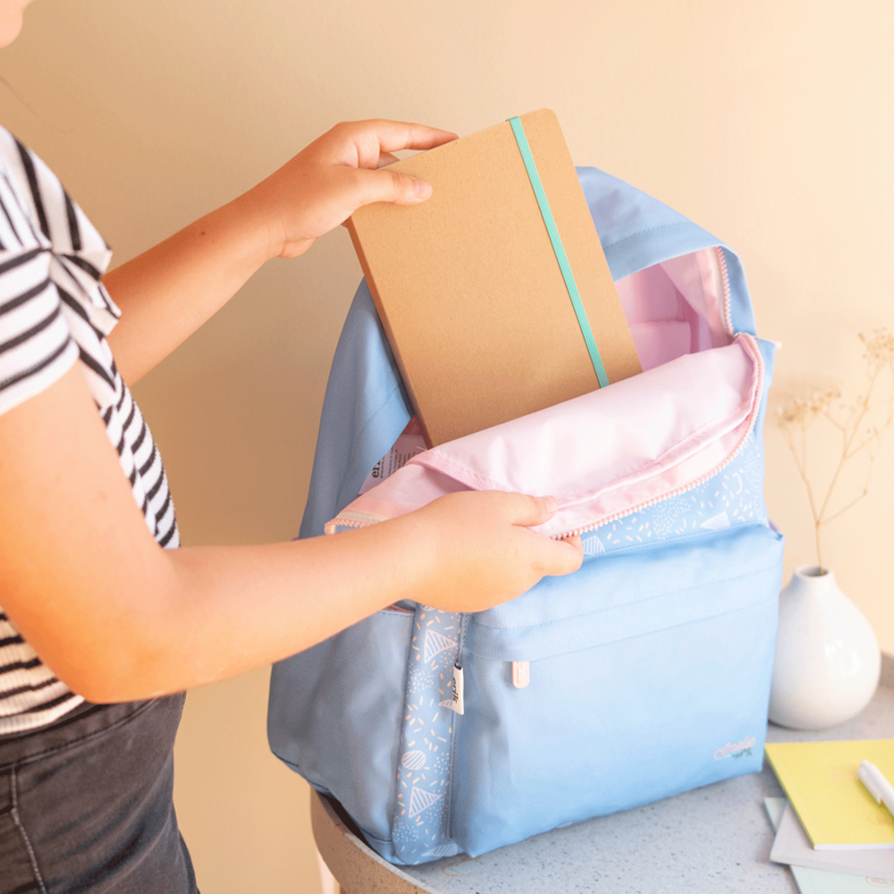 Mochila Amelie Classic, tiene un bolsillo principal con un cierre superior de media luna con cremallera, tres bolsillos exteriores, dos laterales y uno frontal.