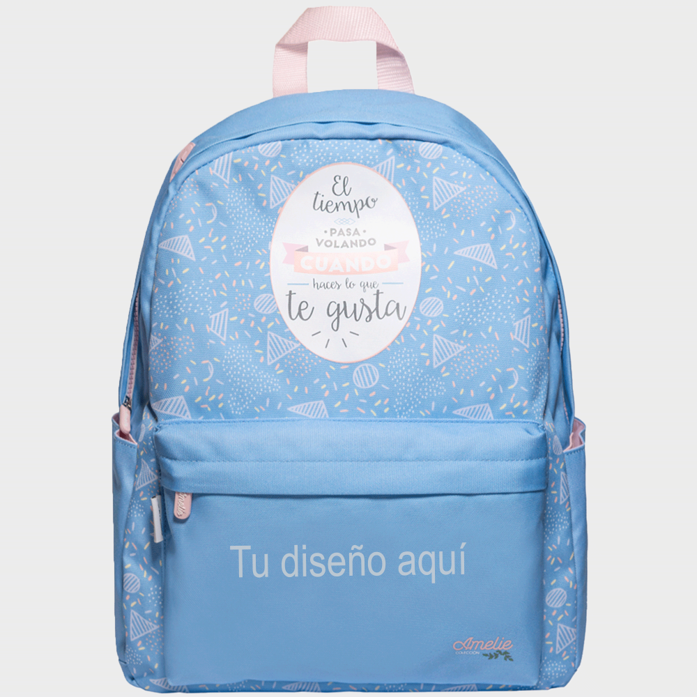 - Todas las mochilas personalizadas deben lavarse a mano, con agua fría y del revés.