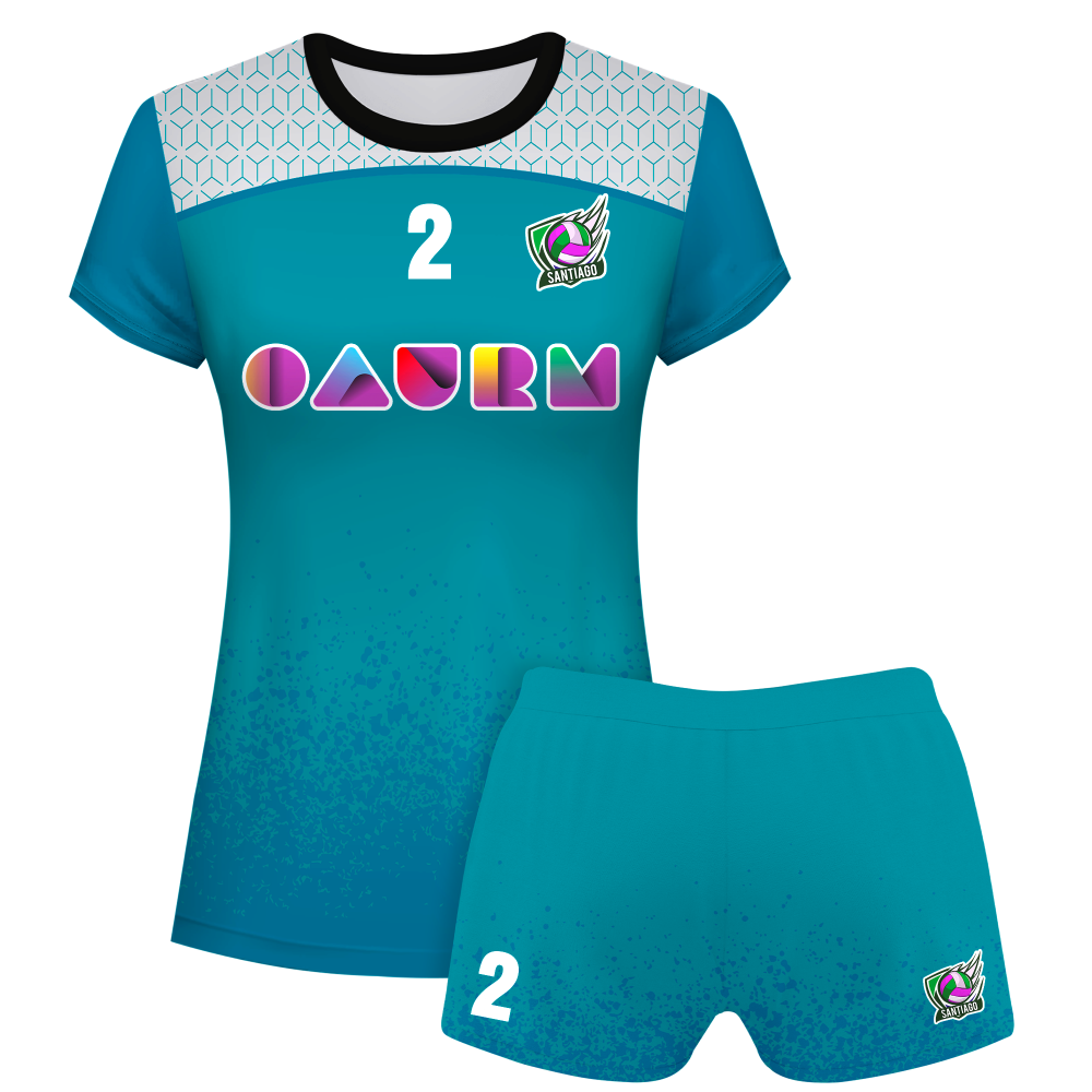 Conjunto de mujer ideal para actividades como voleibol. Modelo Praia que puedes personalizar hasta en 11 zonas diferentes.