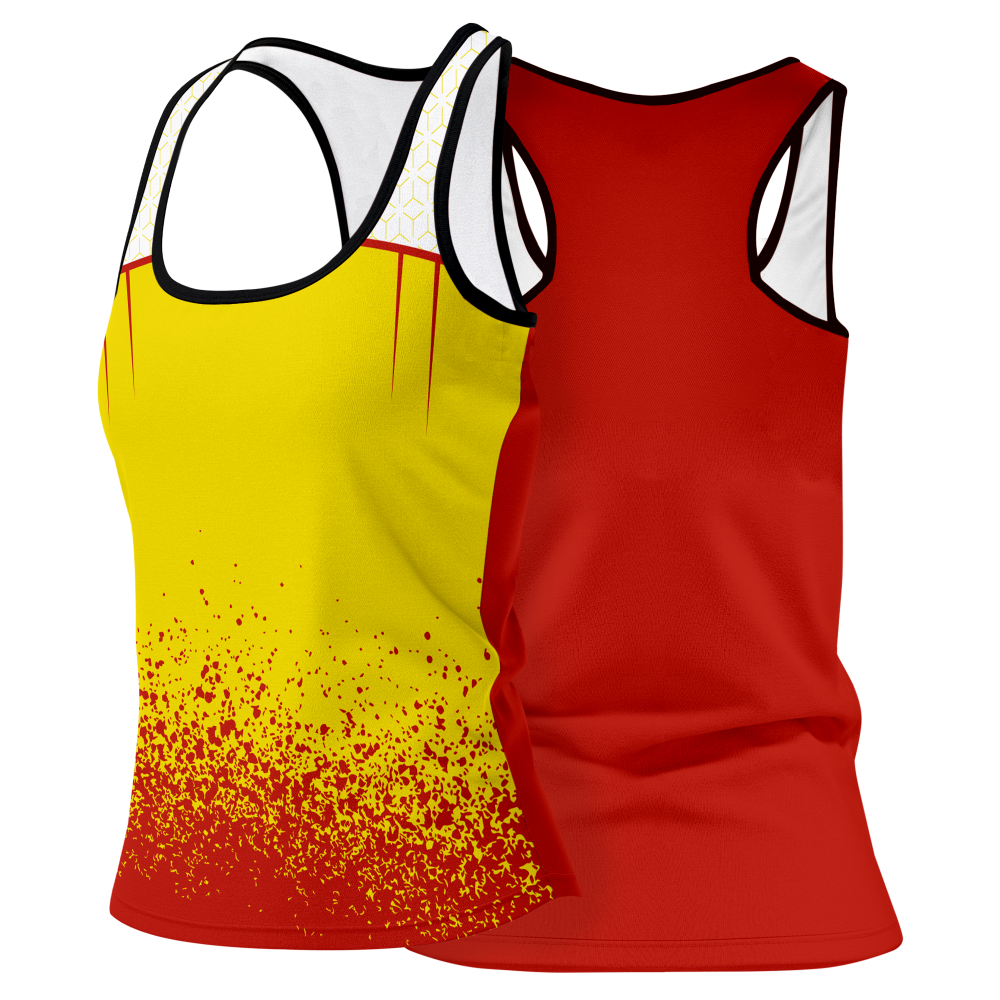 Camiseta de mujer ideal para actividades como voleibol. Modelo Praia con tirantes y espalda tipo nadadora que puedes personalizar hasta en 5 zonas diferentes.