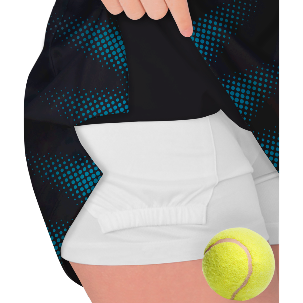 Falda pantalón ideal para actividades como pádel. Modelo Abuya con bolsillo interior para pelota en la malla que puedes personalizar en 3 zonas diferentes.