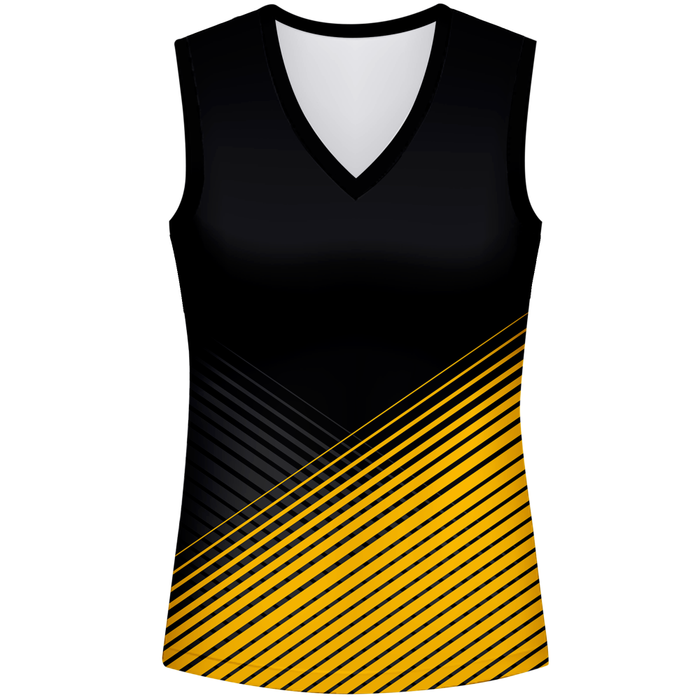 Camiseta de mujer ideal para actividades como voleibol. Modelo Dakar sin mangas y con cuello pico que puedes personalizar hasta en 7 zonas diferentes.