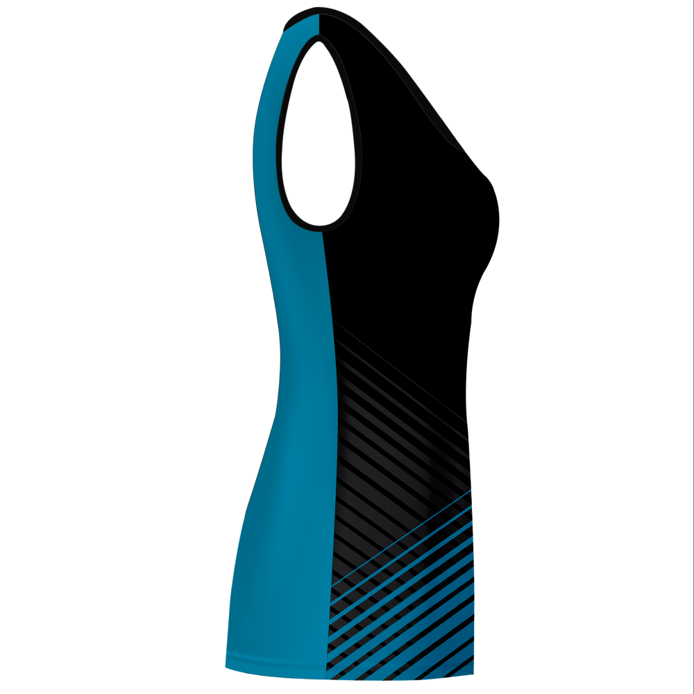 Camiseta de mujer ideal para actividades como voleibol. Modelo Dakar sin mangas y con cuello pico que puedes personalizar hasta en 7 zonas diferentes.