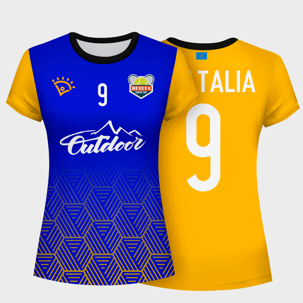 Camiseta de mujer ideal para actividades como pádel. Modelo Yube de manga corta que puedes personalizar hasta en 7 zonas diferentes.