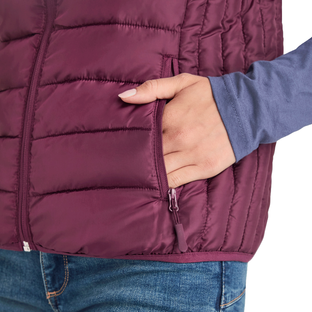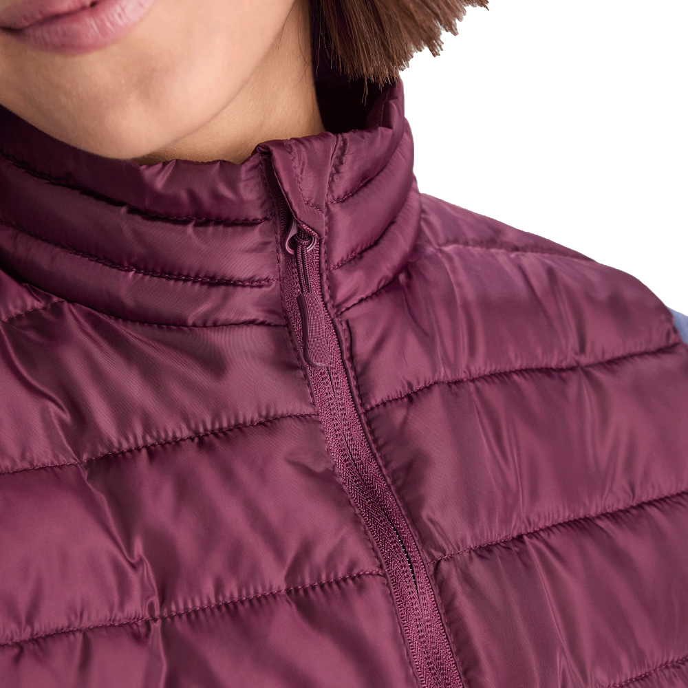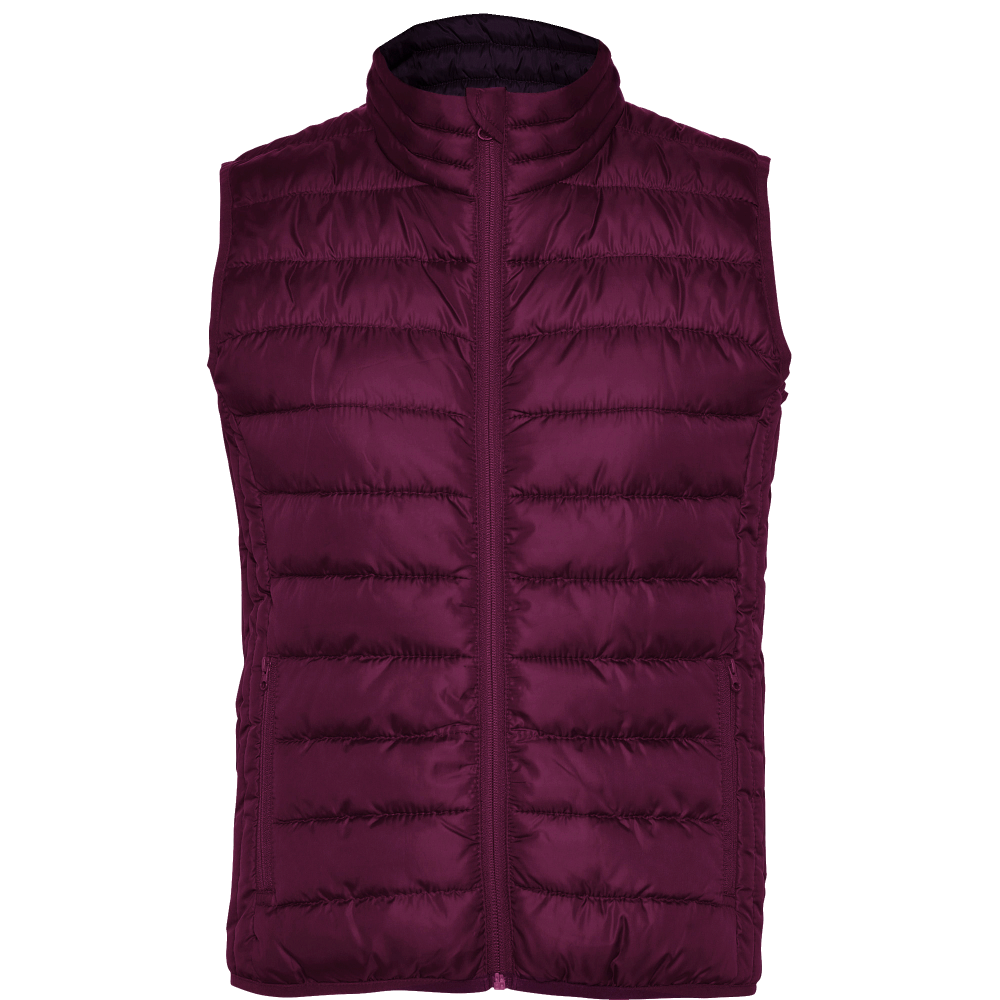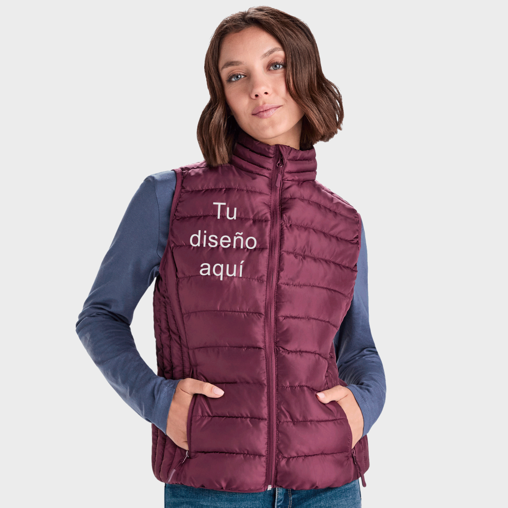 Chaleco acolchado con dos bolsillos con cremalleras laterales y cremallera principal hasta el cuello.