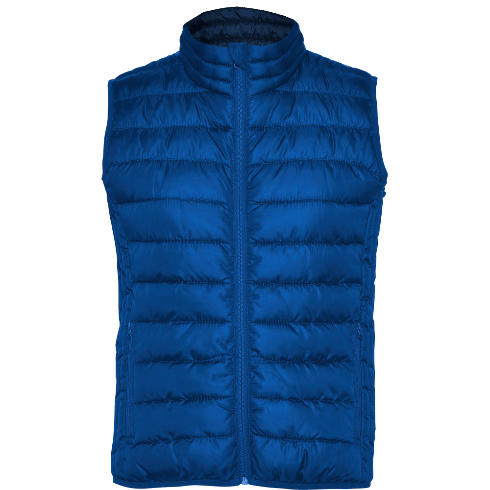 Chaleco acolchado con dos bolsillos con cremalleras laterales y cremallera principal hasta el cuello.
