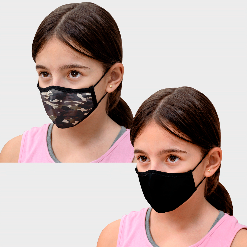 Mascarilla algodón orgánico reversible pequeña camuflaje kaki homologada con protección +90%