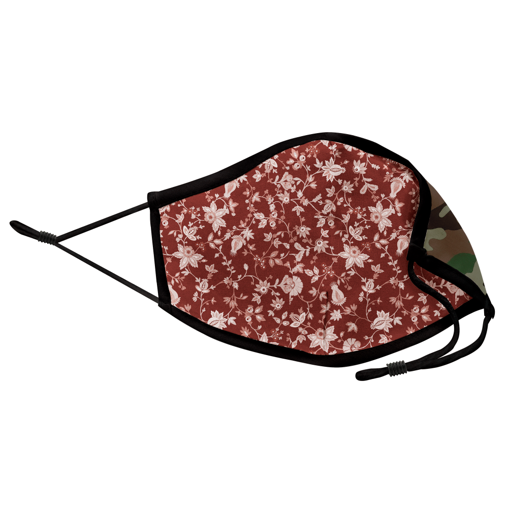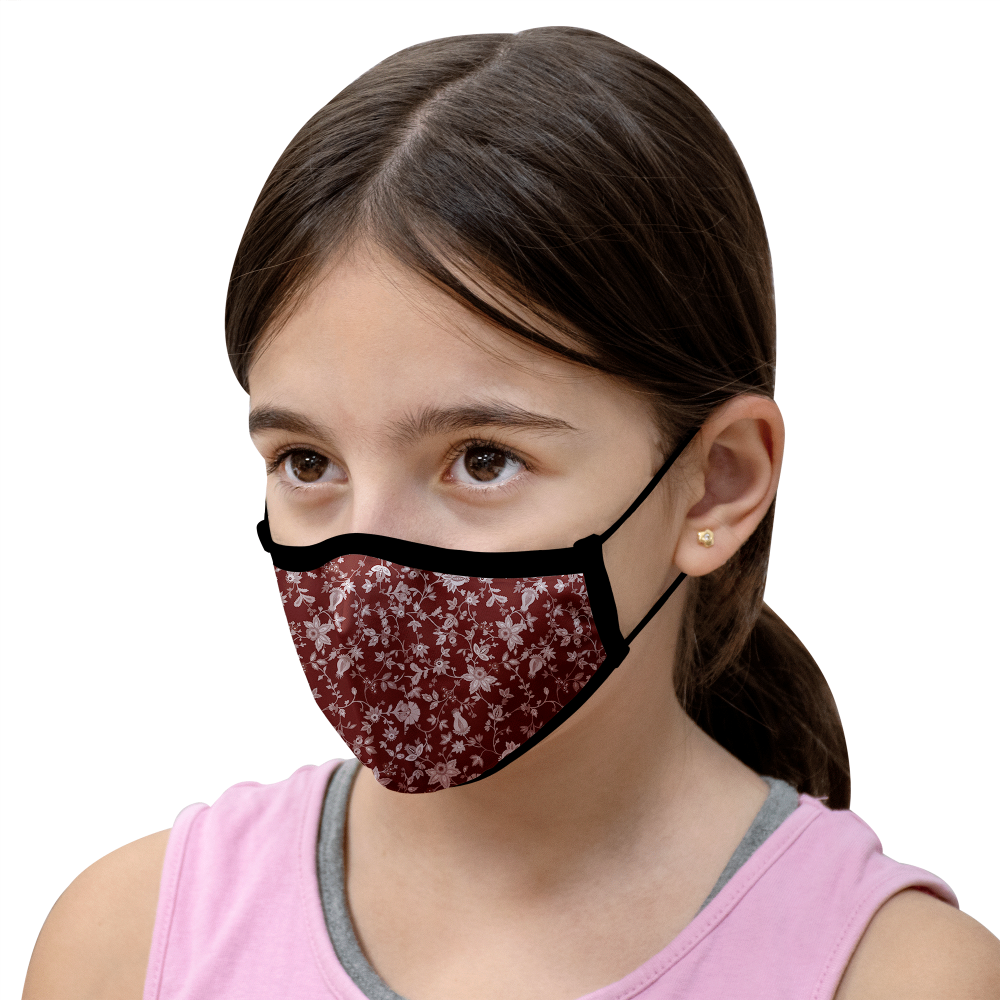 Mascarilla algodón orgánico reversible pequeña flores granate homologada con protección +90%