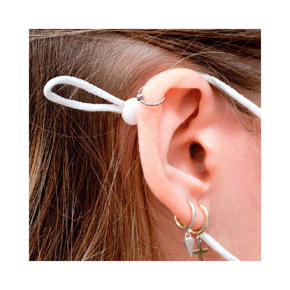 En las gomas viene incorporado un tope regulador, el cual, puedes colocarte de dos formas distintas y ajustarte la goma de la forma que te resulte más cómoda. (Con la compra de cada mascarilla incluimos dos topes extra).