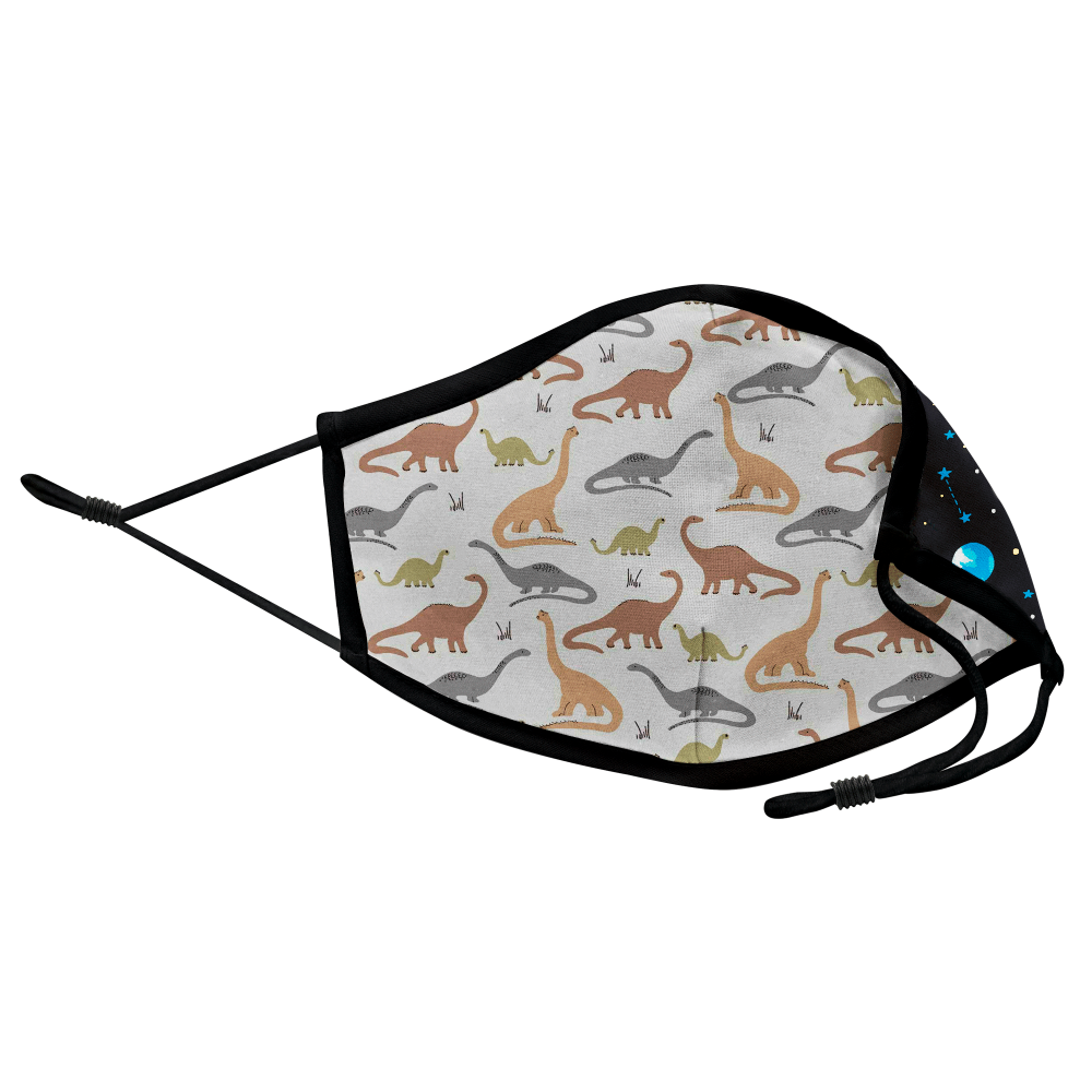 Mascarilla algodón orgánico reversible mediana dinos grey y planets black homologada con protección +90%