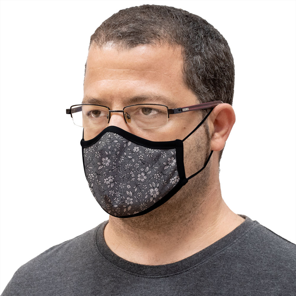 Mascarilla algodón orgánico reversible grande dots black y flower antracite homologada con protección +90%