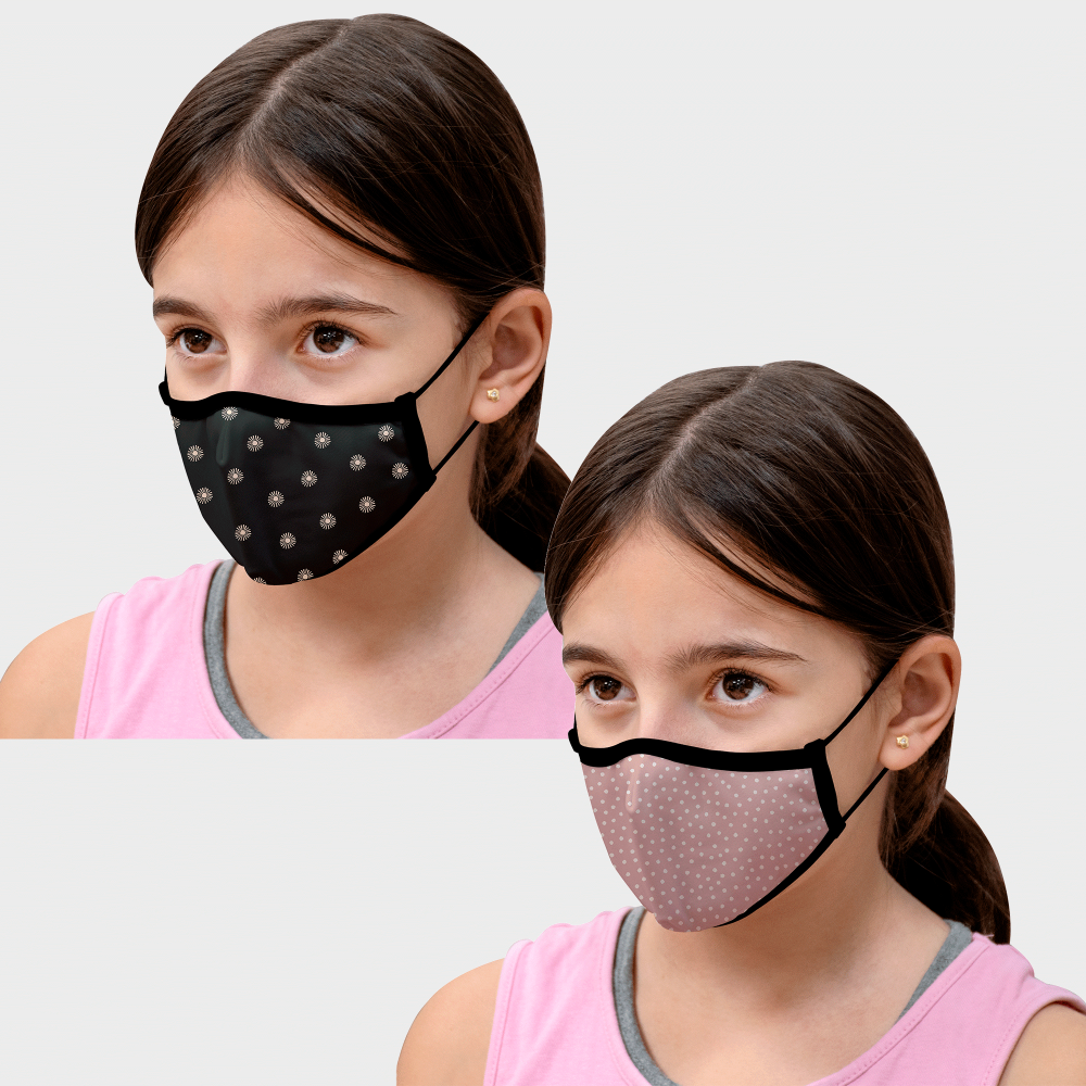 Mascarilla algodón orgánico reversible pequeña full dot pink y sun black homologada con protección +90%