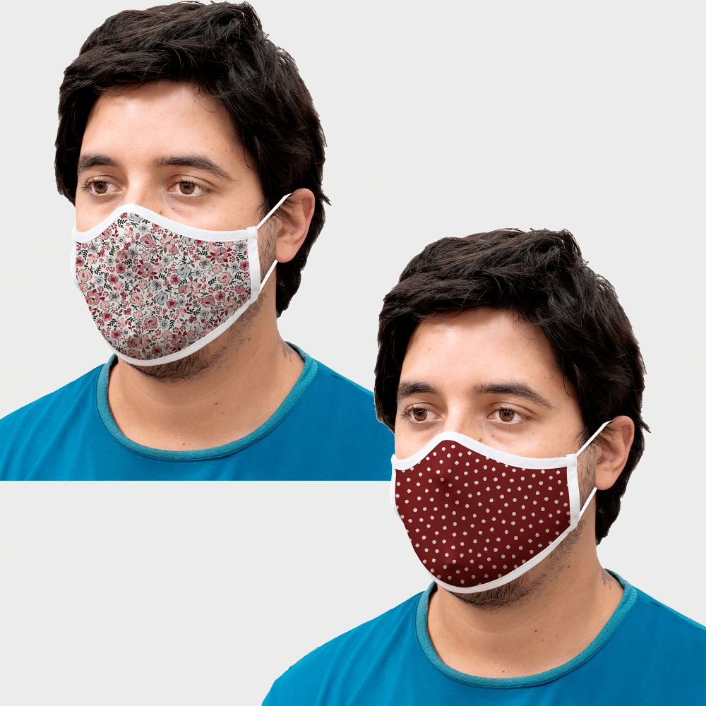 Mascarilla algodón orgánico reversible súper grande full dot dark red y ditsy flower pink homologada con protección +90%