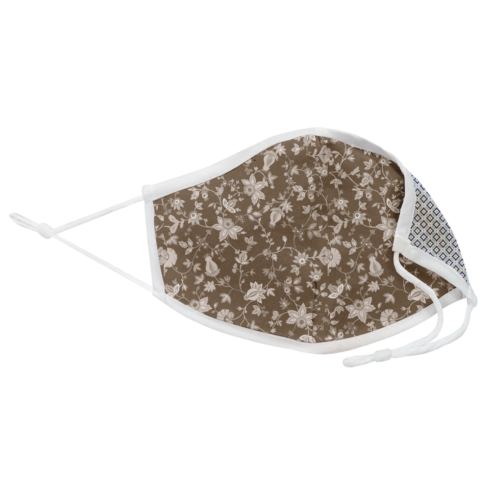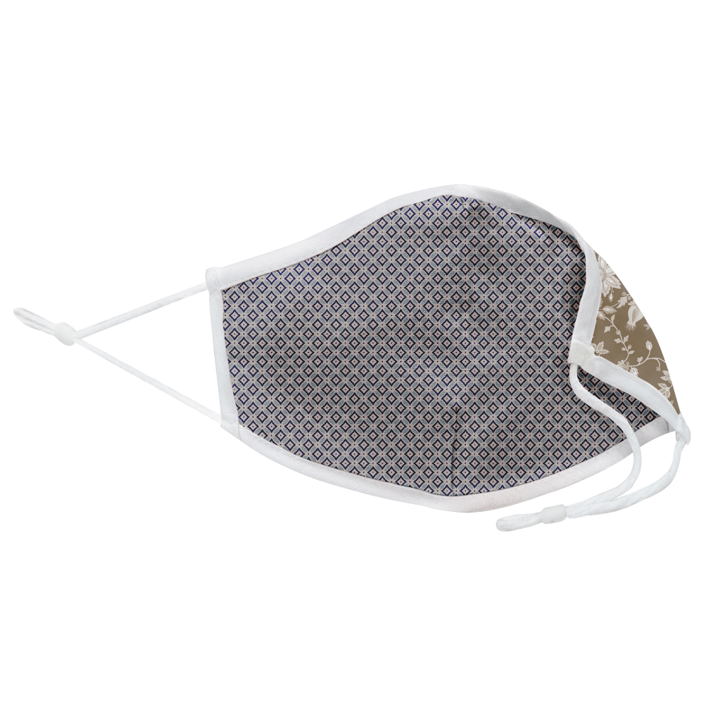 Mascarilla algodón orgánico reversible mediana provençal flower stone y geo tie blue homologada con protección +90%