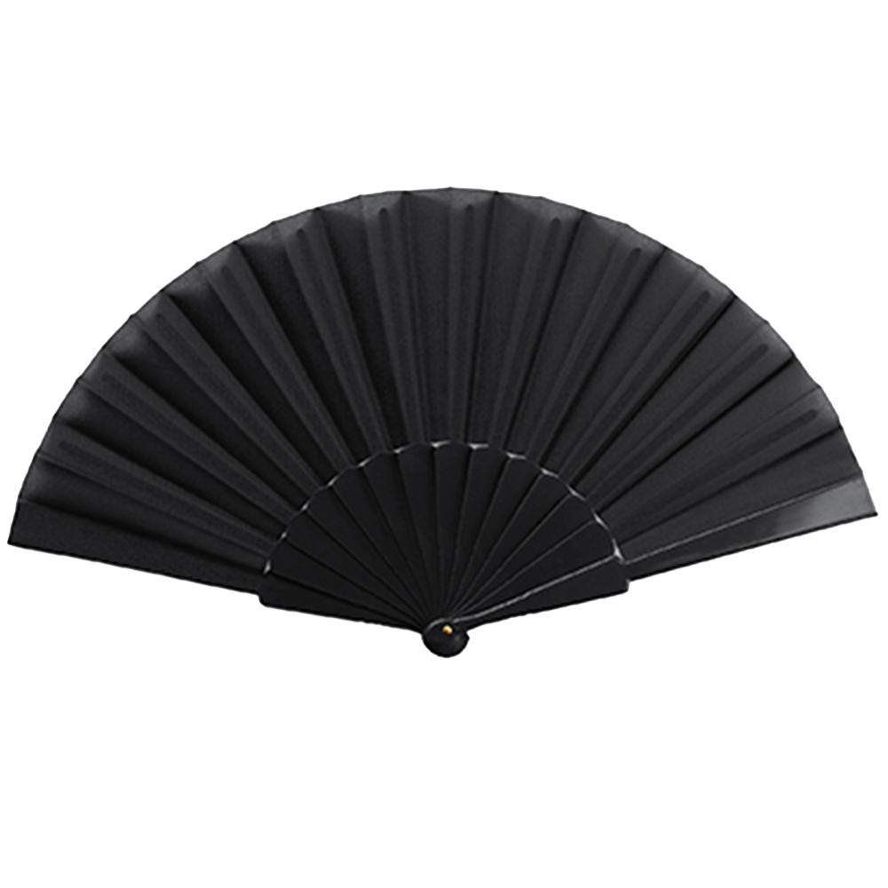 Abanico con varillas de plástico y tela en poliéster.