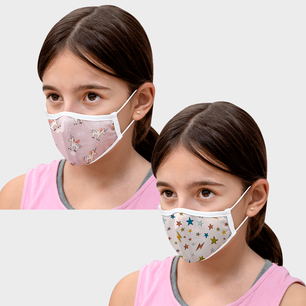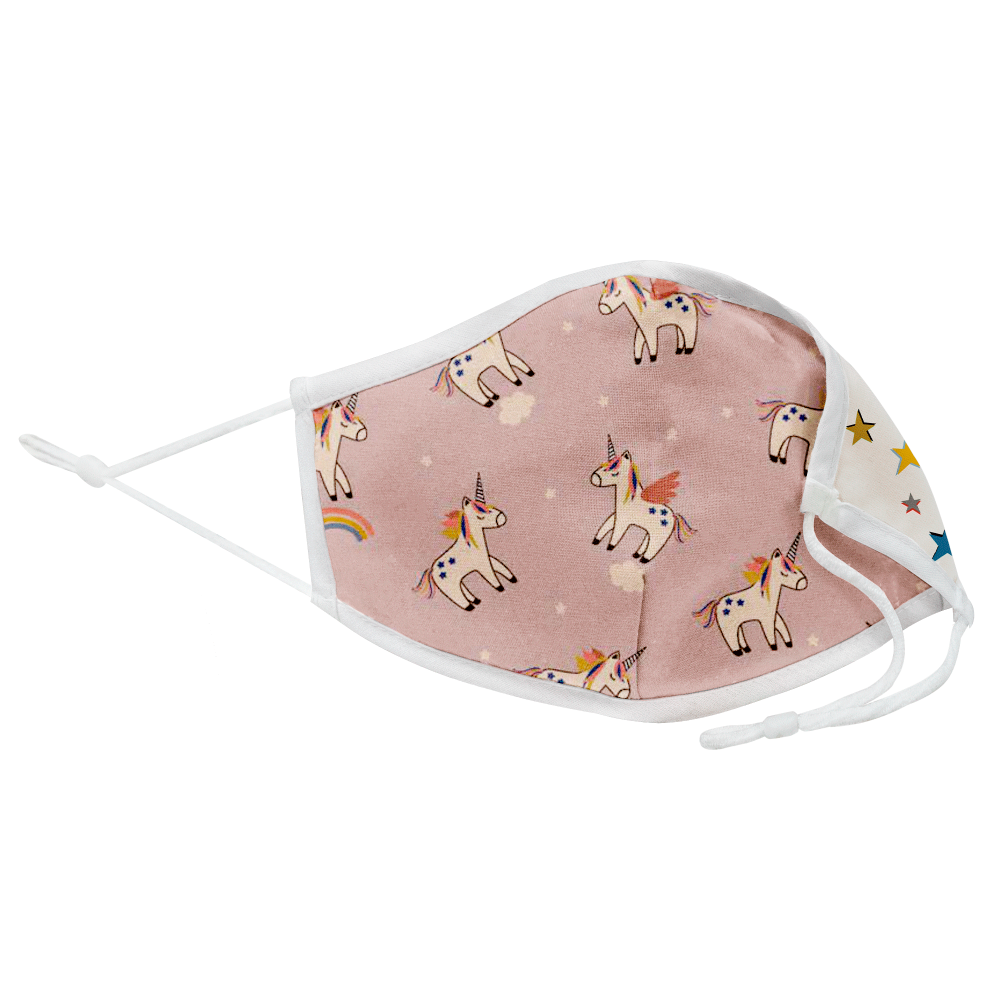 Mascarilla algodón orgánico reversible pequeña unicorn pink y star homologada con protección +90%