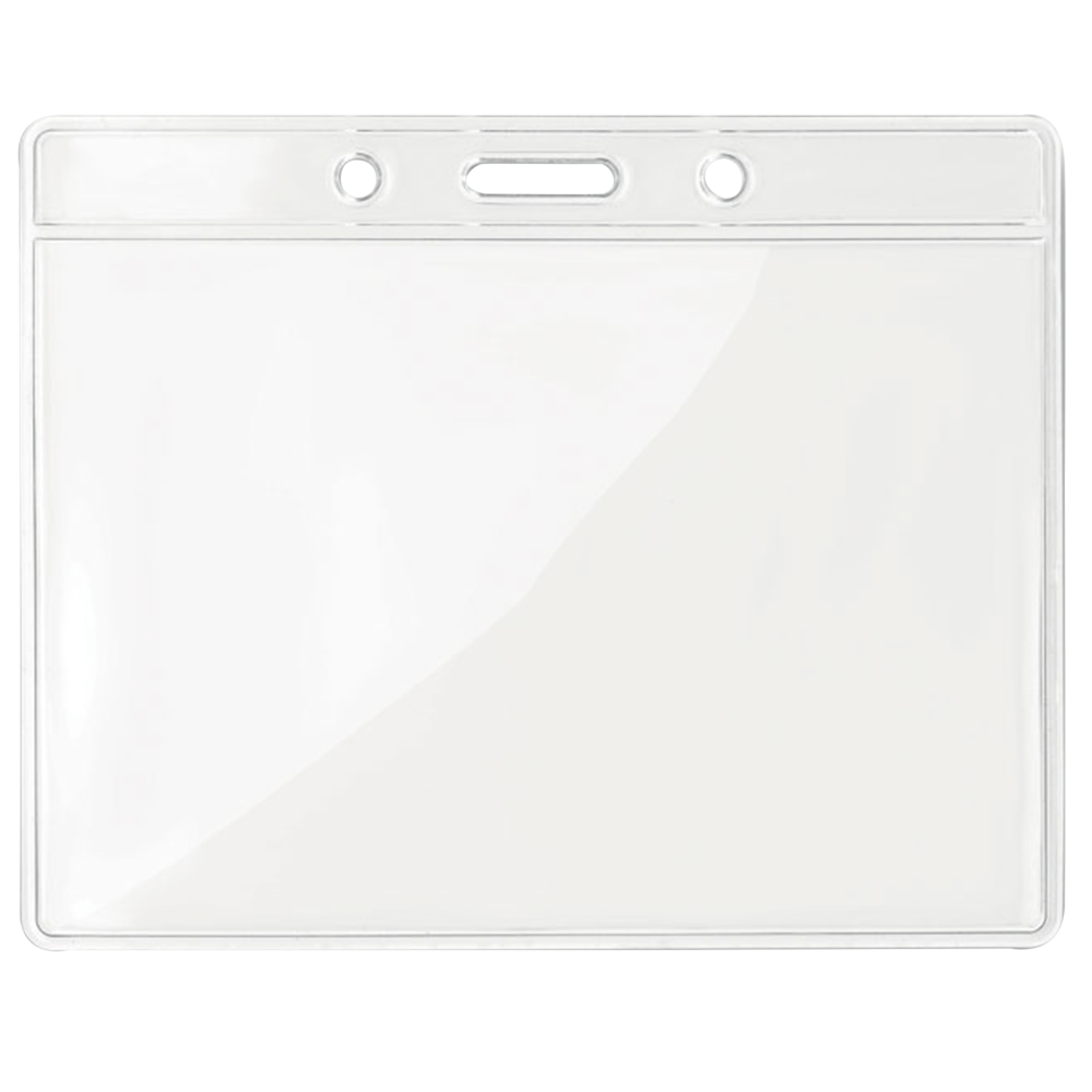 Identificador transparente de 11 cms x 9,5 cms.