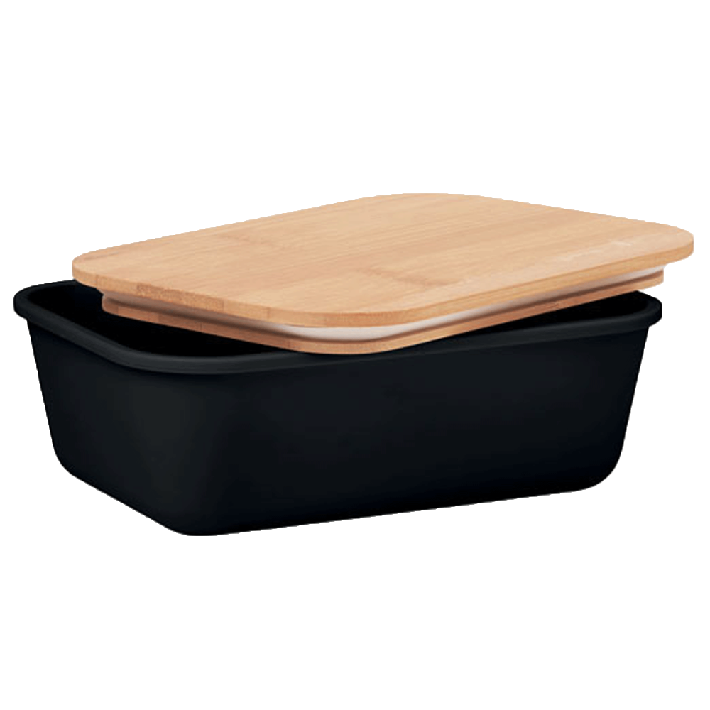 Fiambrera de PP veteado libre de BPA con tapa de bambú ( el bambú al ser un material natural puede haber variaciones ligeras de color en el producto).