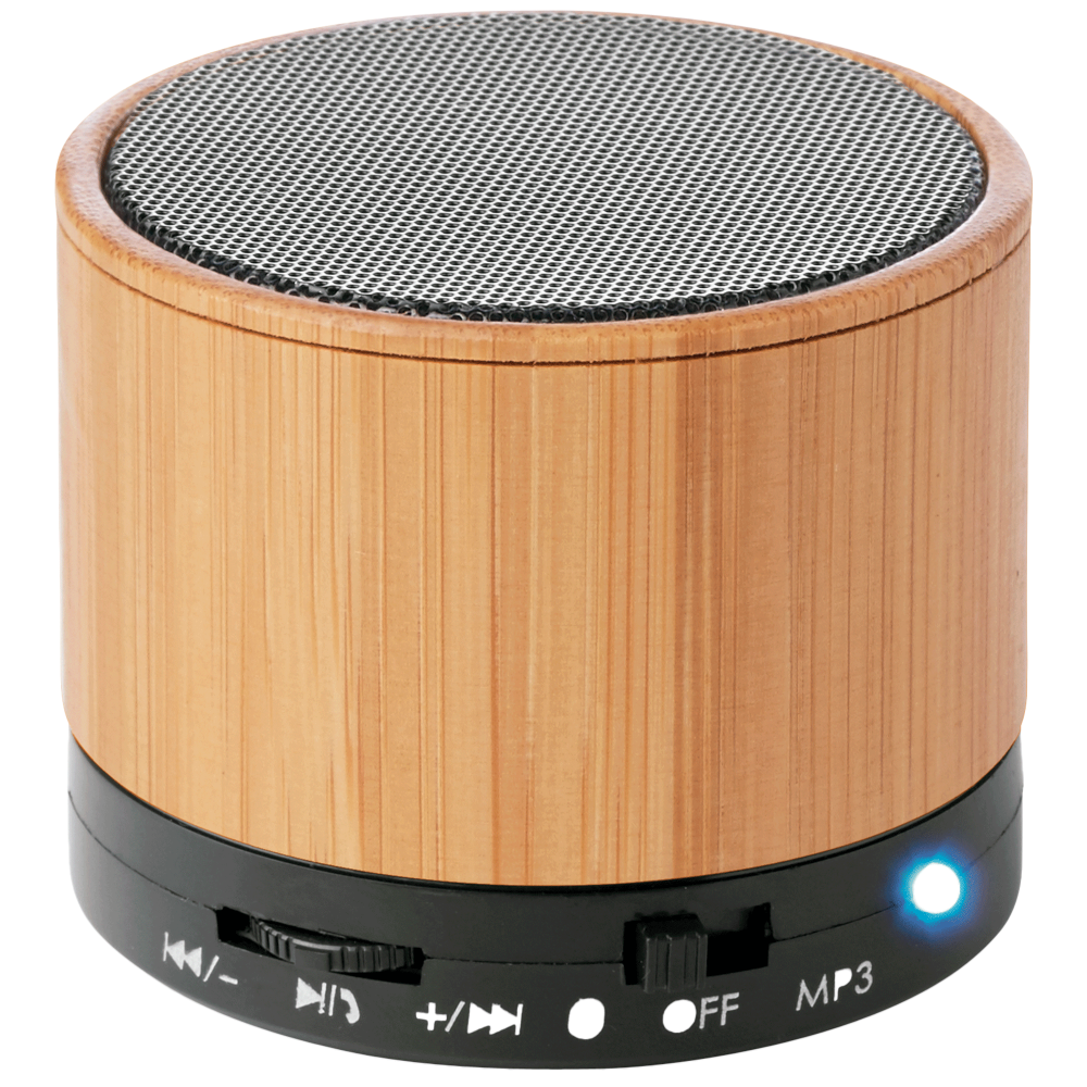 • Altavoz inalámbrico 54.2 en ABS con carcasa de bambú y luz indicadora LED.