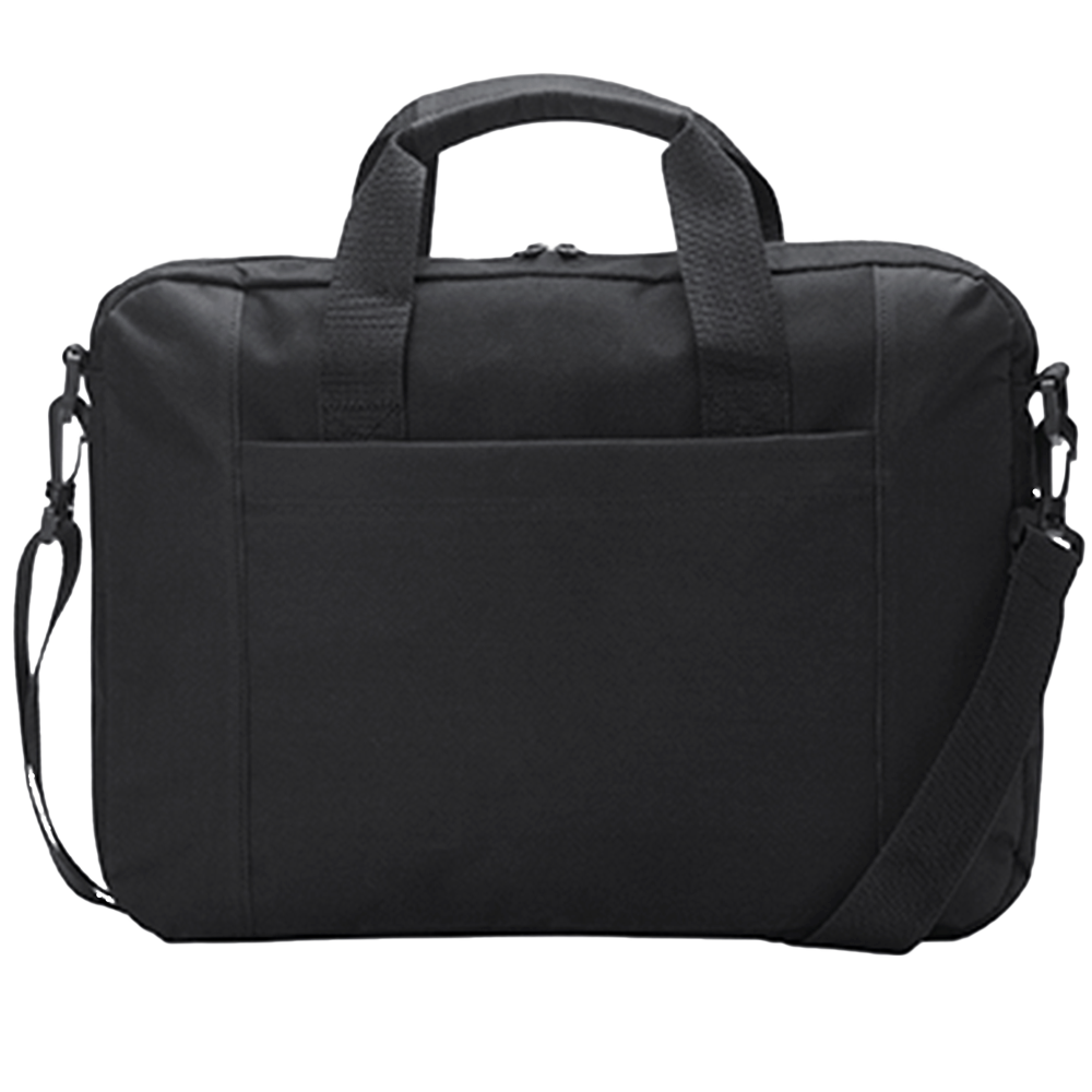 Portadocumentos acolchado para portátil en suave poliéster 600D con bolsillo exterior. Asas de transporte a juego y cinta bandolera ajustable con mosquetón.
