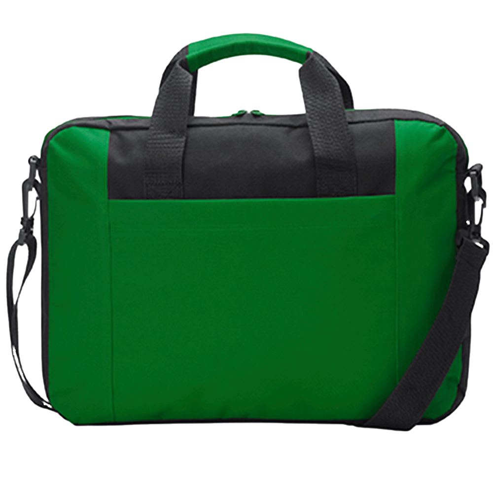 Portadocumentos acolchado para portátil en suave poliéster 600D con bolsillo exterior. Asas de transporte a juego y cinta bandolera ajustable con mosquetón.