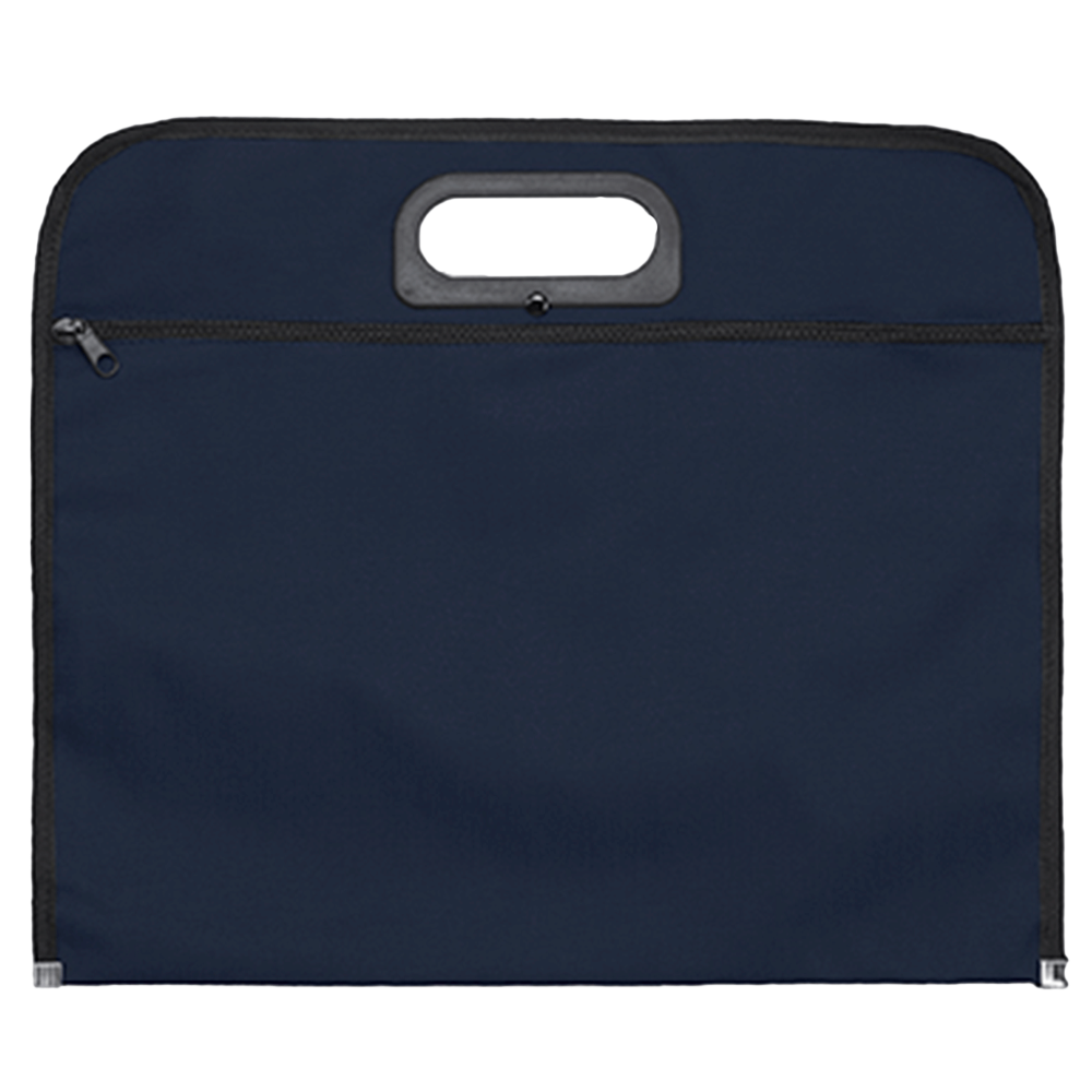 Portadocumentos de poliéster 600D con un compartimento princpial y cierre de cremallera. Ribetes con refuerzo y asa de transporte integrada en el diseño.