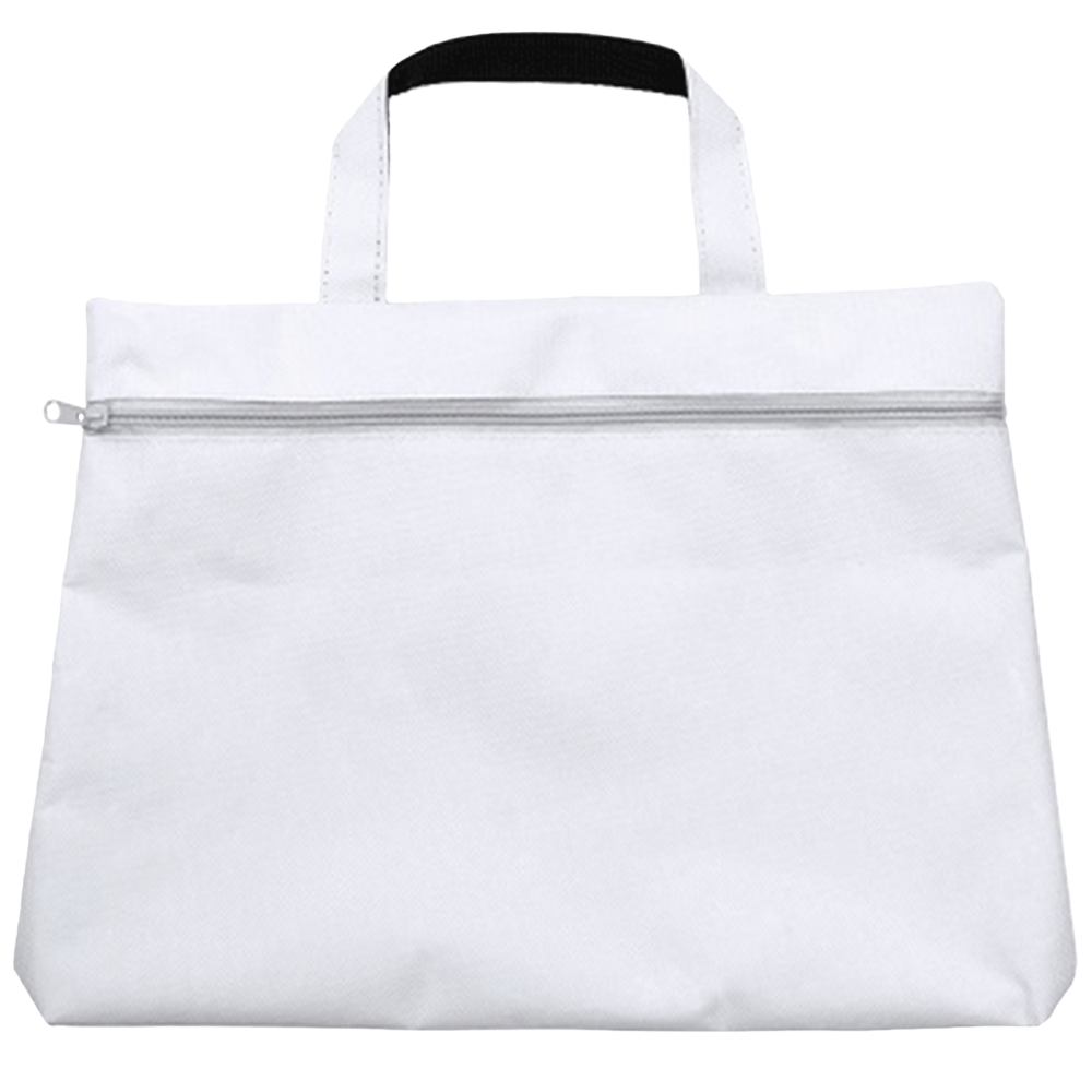 Portadocumentos de poliéster 600D en variados colores con asa de transporte y cremallera a juego.
