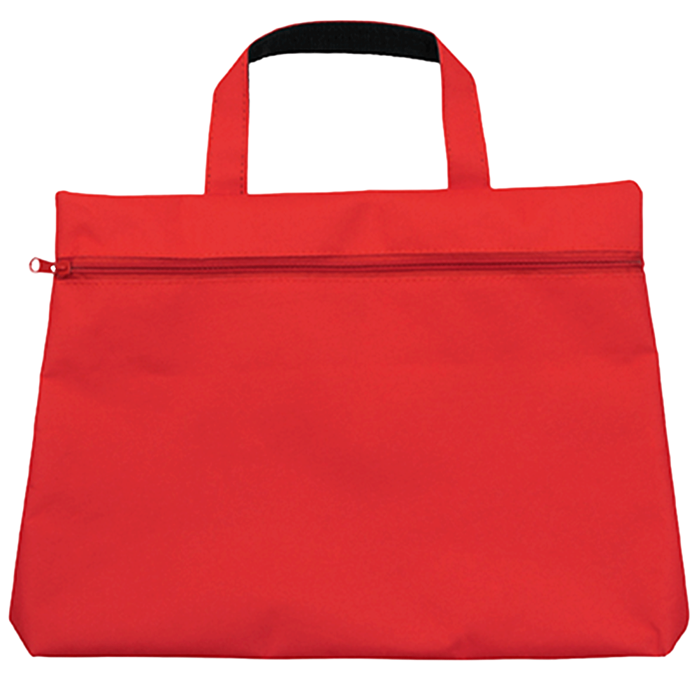Portadocumentos de poliéster 600D en variados colores con asa de transporte y cremallera a juego.
