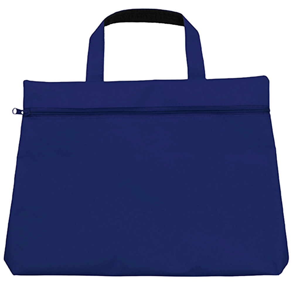 Portadocumentos de poliéster 600D en variados colores con asa de transporte y cremallera a juego.
