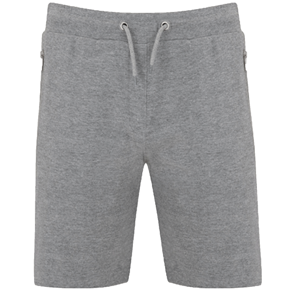 Pantalón corto deportivo con cintura elástica y cordón ajustable con ojales metálicos. Dos bolsillos laterales con cremalleras invertidas a tono y tirador