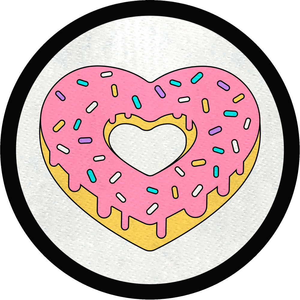 Parche stick DTF Eco flock negro con diseño de donut de corazón.