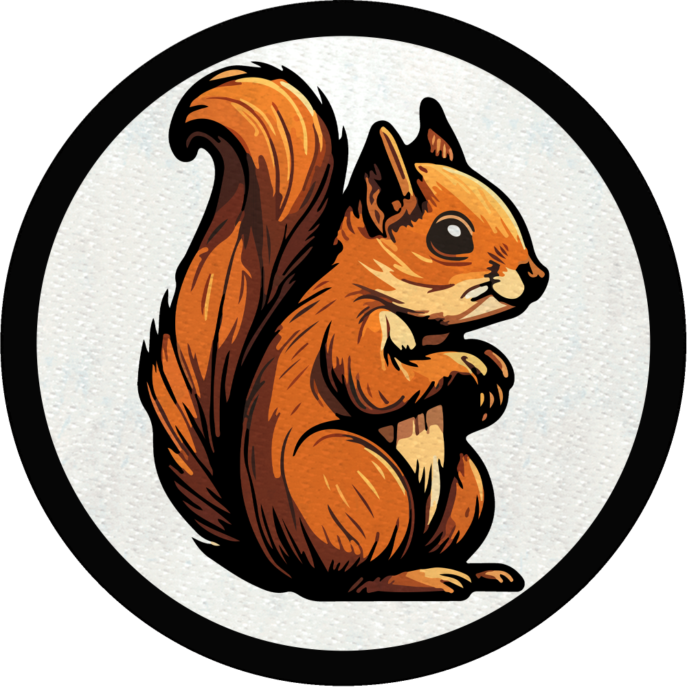 Parche stick DTF Eco flock negro con diseño de ardilla.