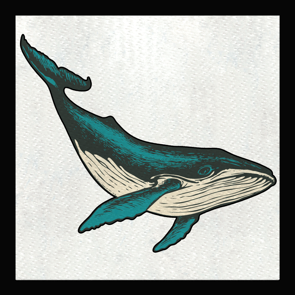 Parche stick DTF Eco flock negro con diseño de ballena.