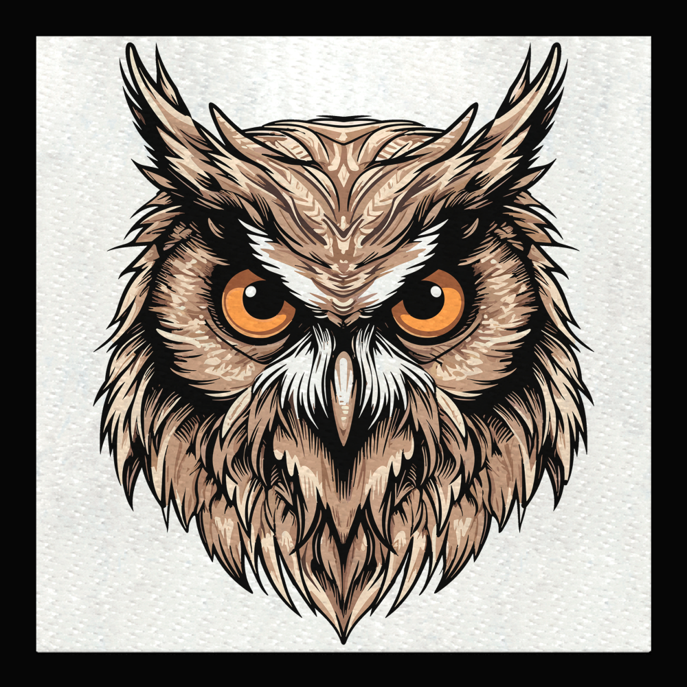 Parche stick DTF Eco flock negro con diseño de búho real.