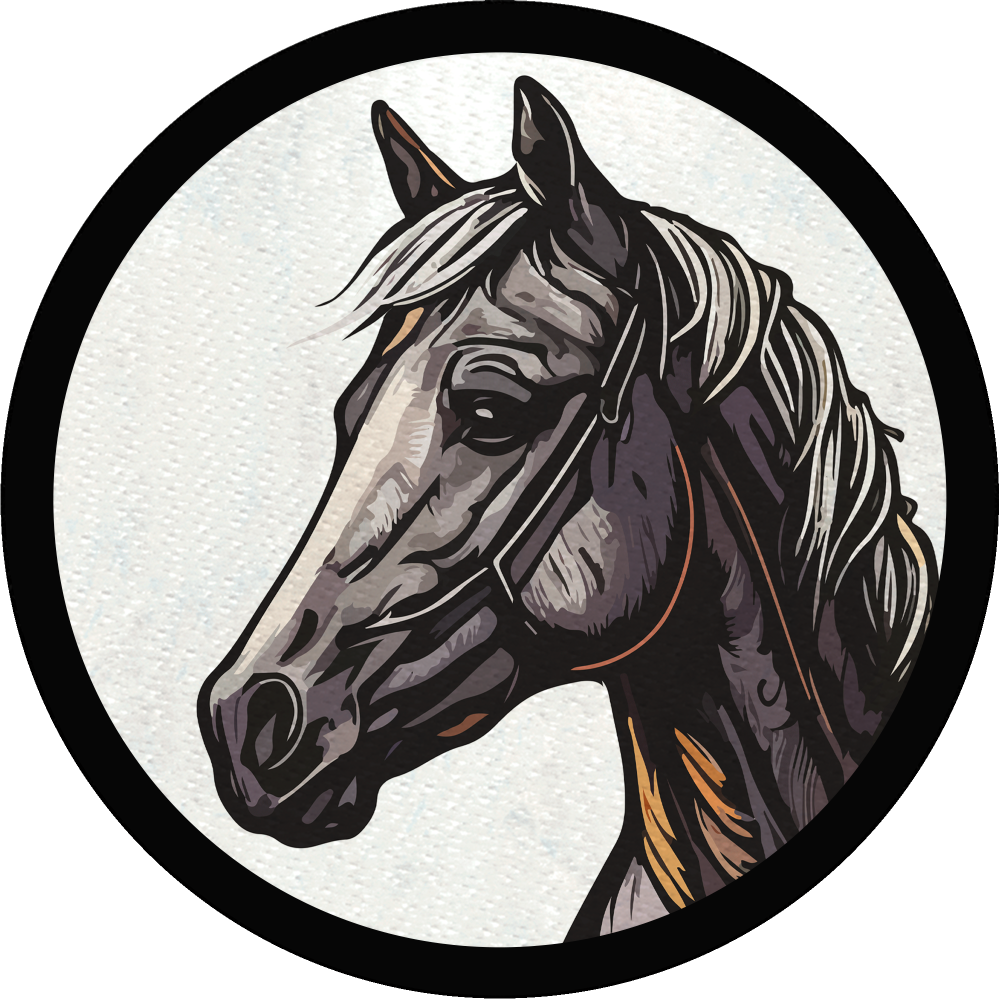 Parche stick DTF Eco flock negro con diseño de caballo negro.