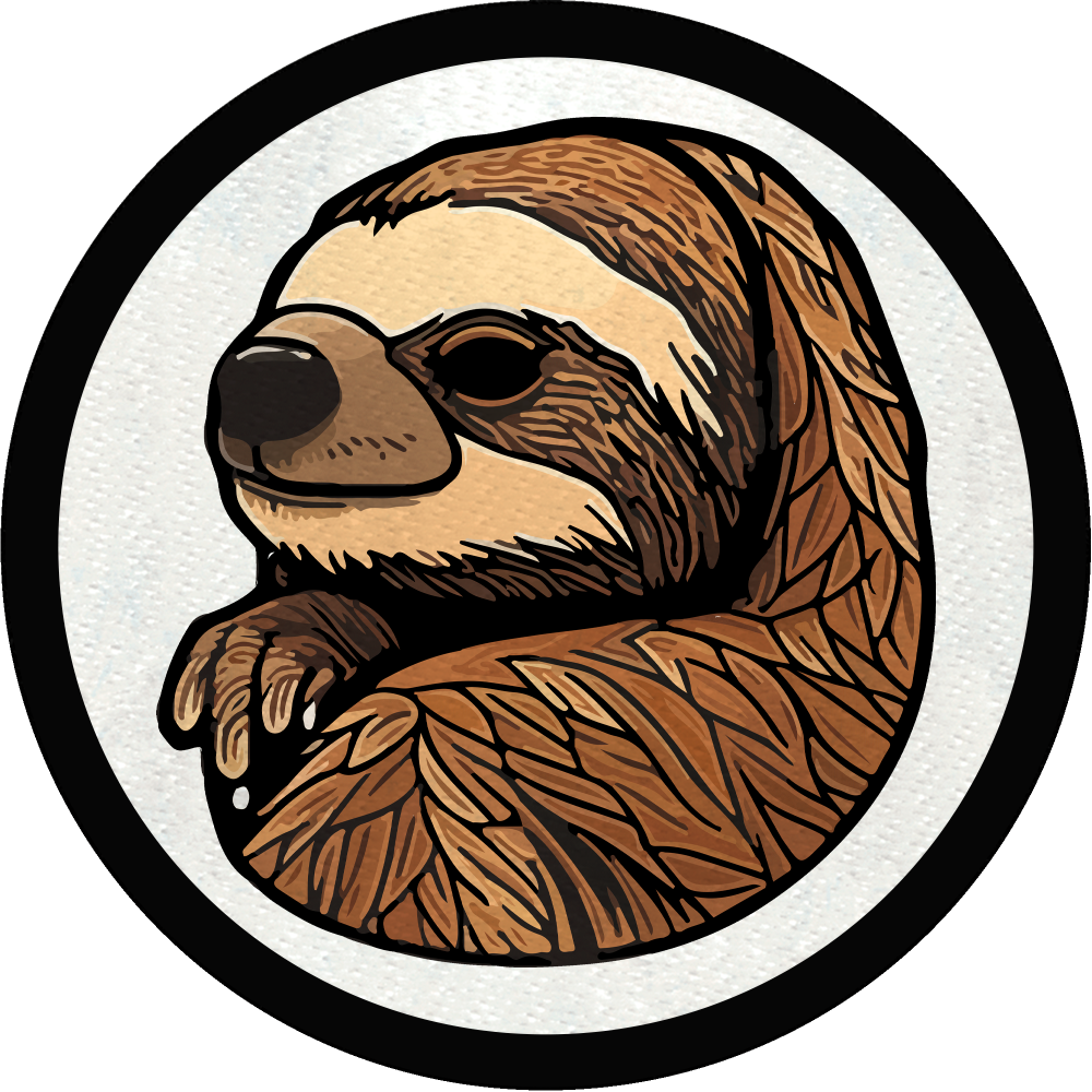 Parche stick DTF Eco flock negro con diseño de cabeza de perezoso.