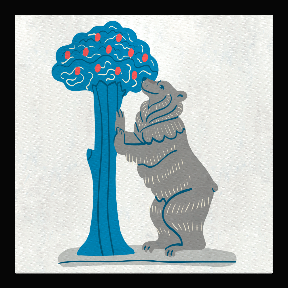 Parche stick DTF Eco flock negro con diseño del Oso y el Madroño.