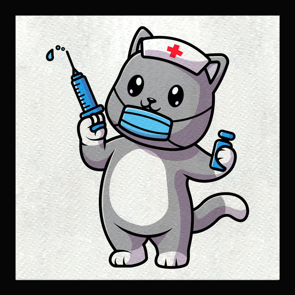 Parche stick DTF Eco flock negro con diseño de enfermero gatito.