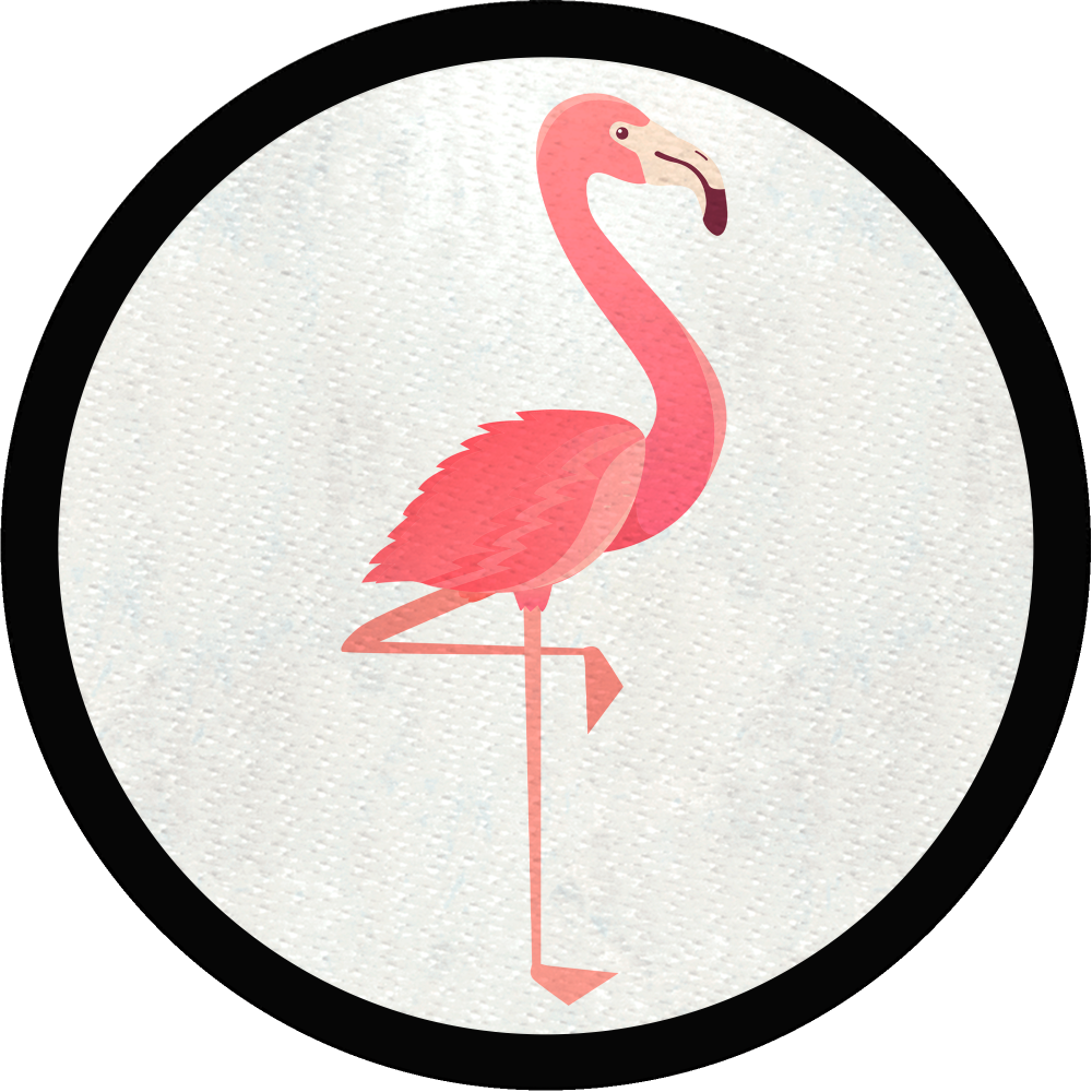 Parche stick DTF Eco flock negro con diseño de flamenco.