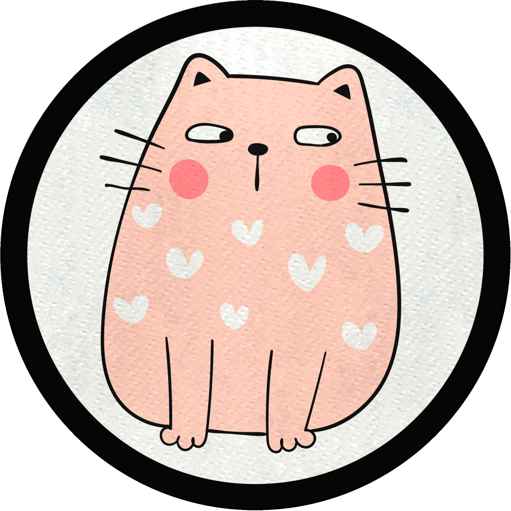 Parche stick DTF Eco flock negro con diseño de gato con corazones blancos.