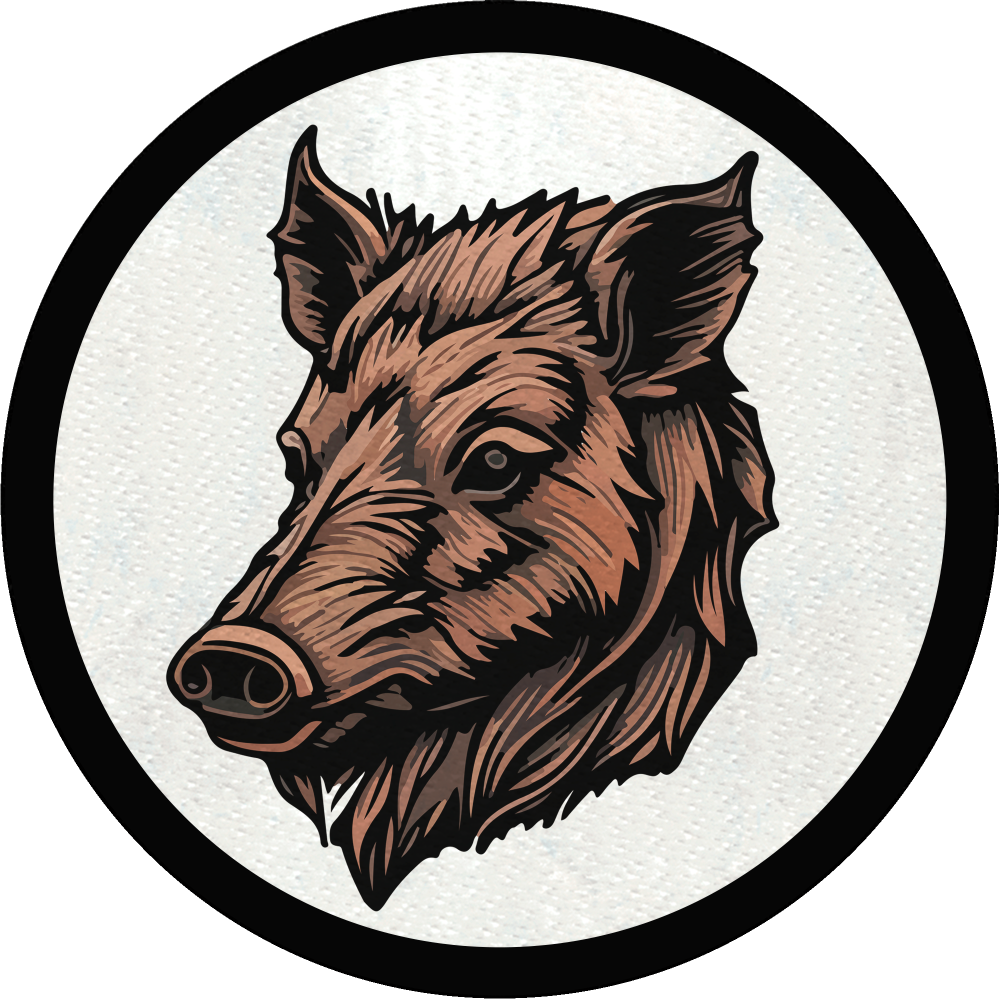 Parche stick DTF Eco flock negro con diseño de jabalí.