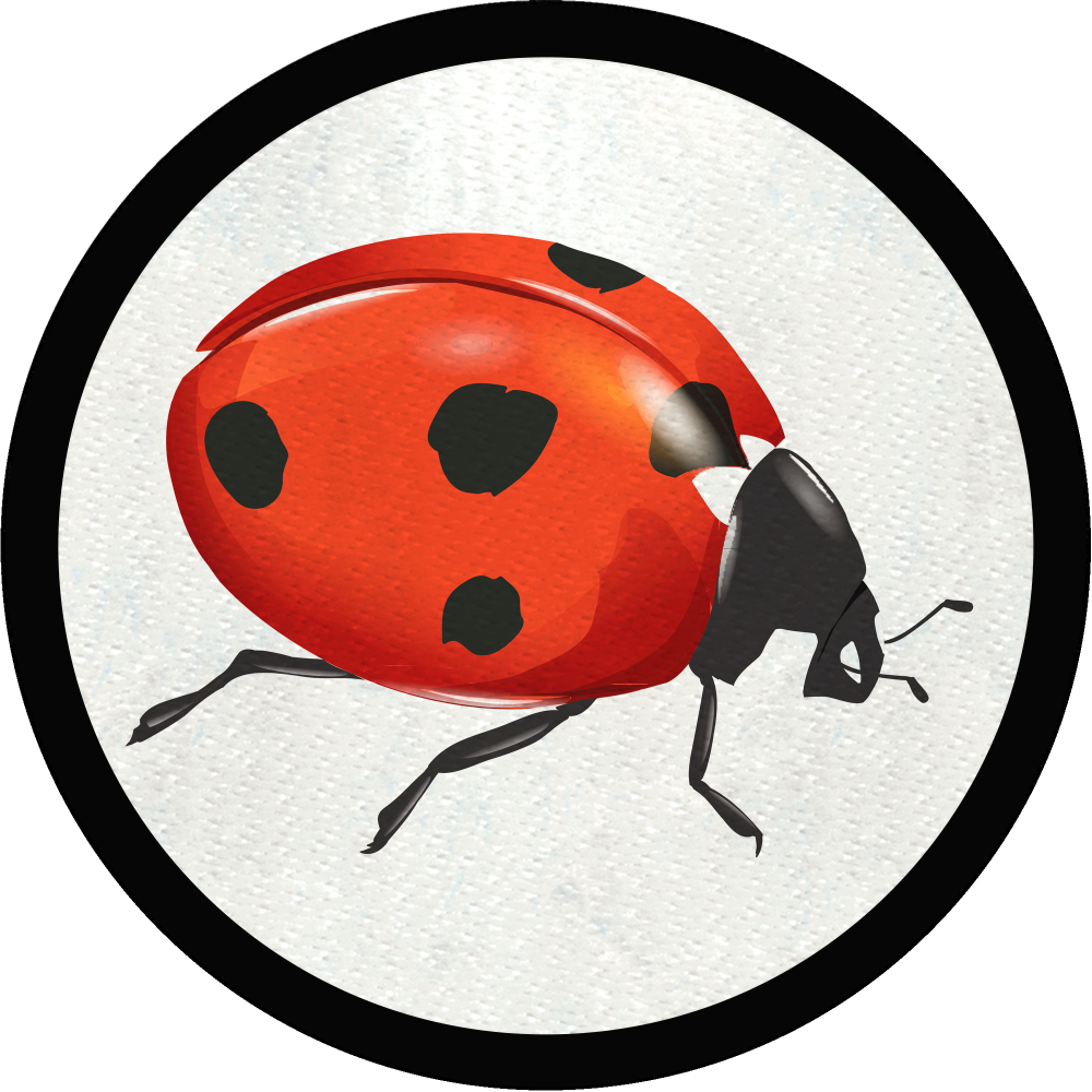 Parche stick DTF Eco flock negro con diseño de mariquita.