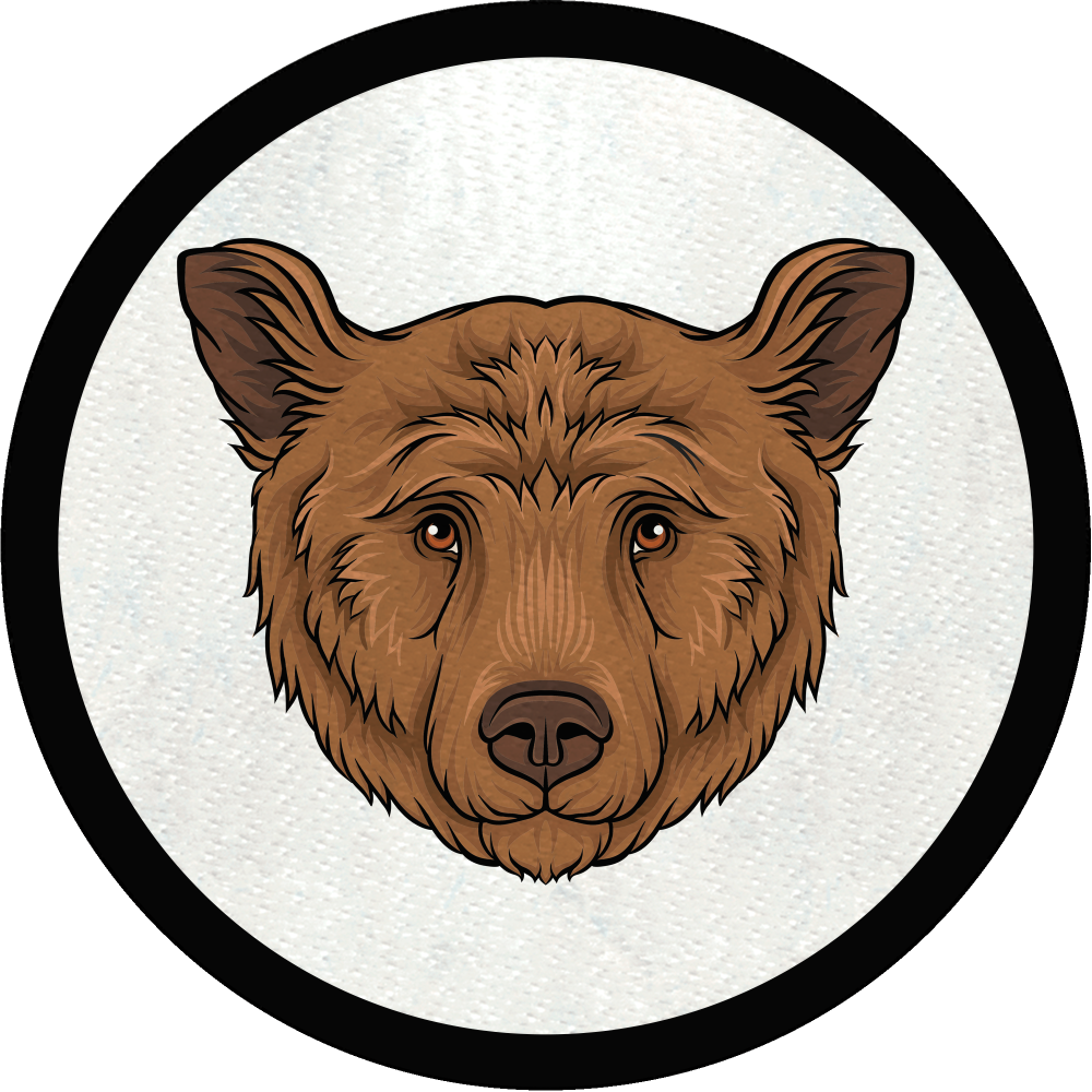 Parche stick DTF Eco flock negro con diseño de oso pardo.
