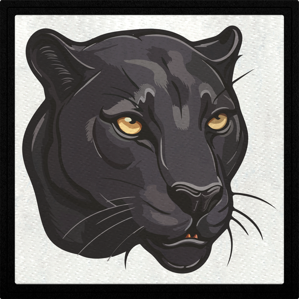 Parche stick DTF Eco flock negro con diseño de pantera.