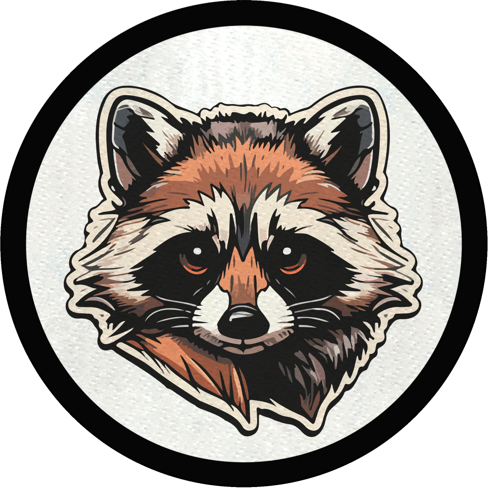 Parche stick DTF Eco flock negro con diseño de procyon lotor.