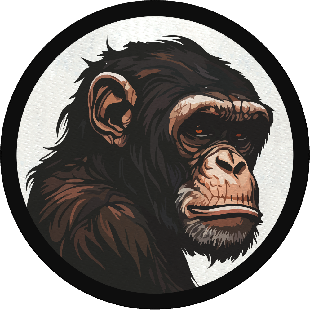 Parche stick DTF Eco flock negro con diseño de simio.