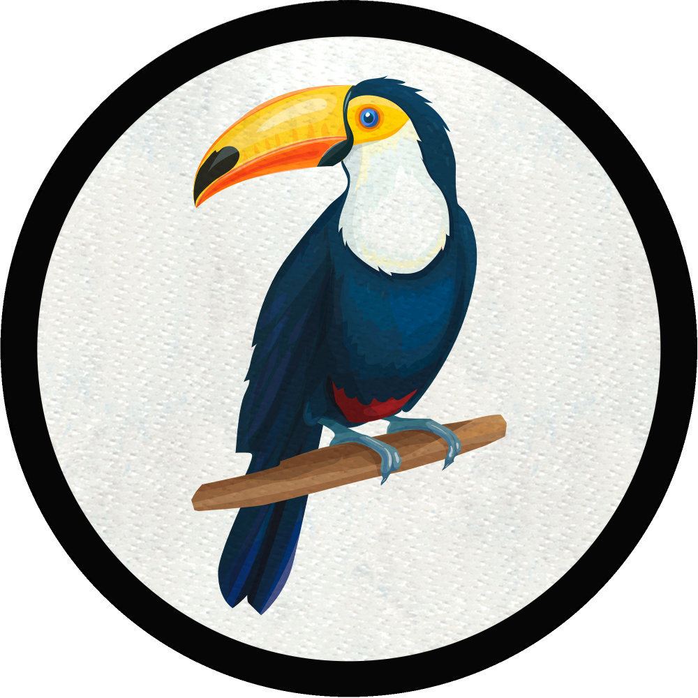 Parche stick DTF Eco flock negro con diseño de tucán.
