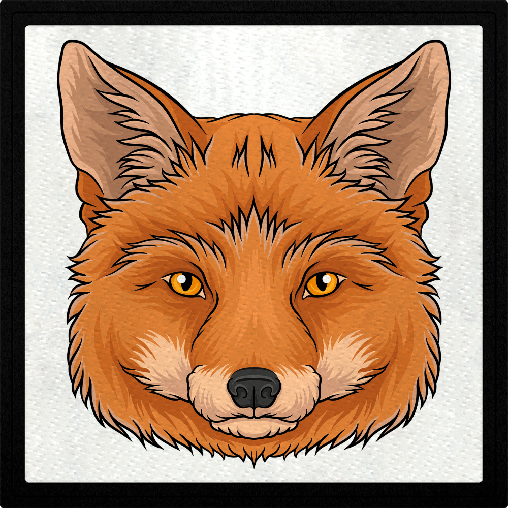 Parche stick DTF Eco flock negro con diseño de zorro rojo.